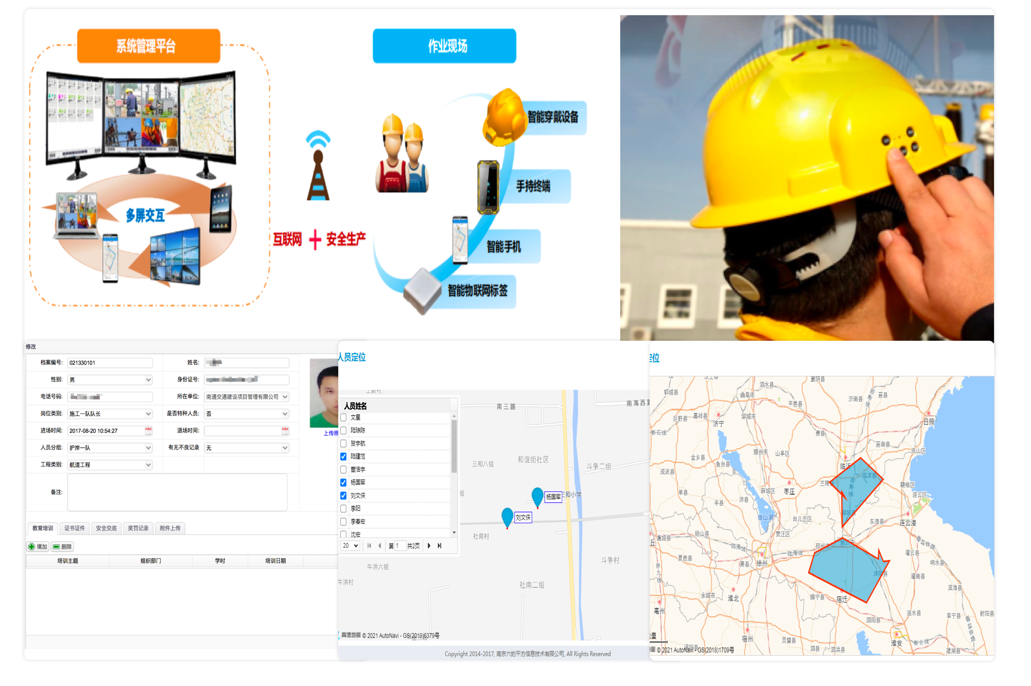 通過(guò)智能安全帽、考勤機(jī)硬件設(shè)備,結(jié)合PC端人員數(shù)據(jù)管理分析,實(shí)現(xiàn)項(xiàng)目人員實(shí)名制信息、考勤、工資、保險(xiǎn)、定位、軌跡
