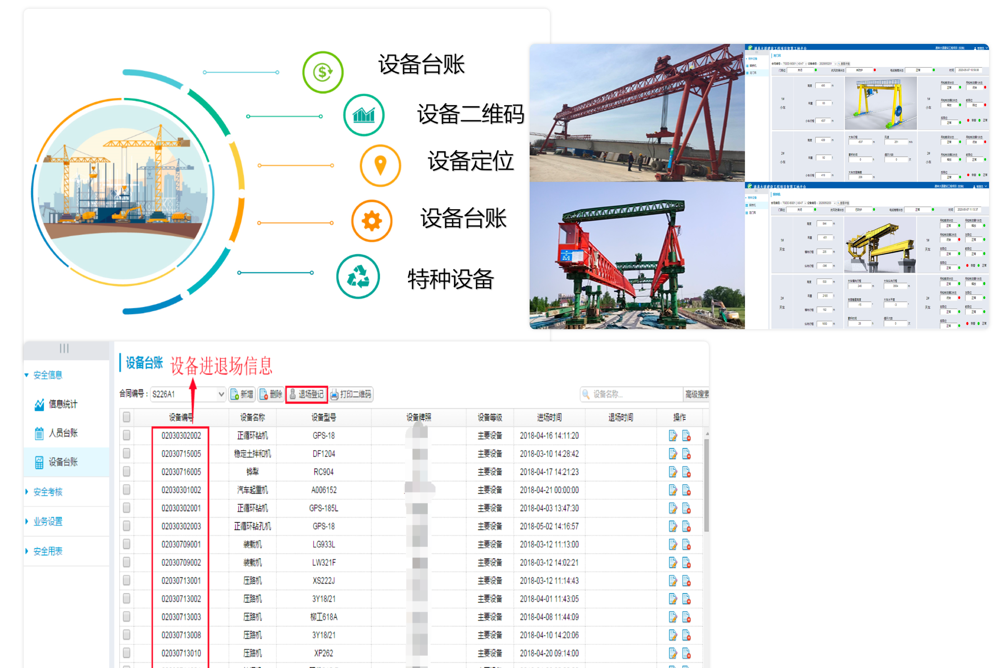 在項(xiàng)目施工過(guò)程中會(huì)有大量設(shè)備的使用,針對(duì)施工設(shè)備進(jìn)行進(jìn)出場(chǎng)登記,能有效的了解和掌握項(xiàng)目設(shè)備投入情況,同時(shí)對(duì)特種